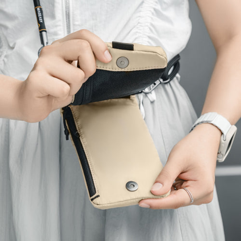 透過磁扣開闔的摺疊式設計,提供包含手機快取袋等多個收納空間,方便分類收納隨身物品。兩種抗撕裂、防潑水布料選擇:聚酯纖維及 CORDURA® 彈道尼龍。感應卡層設計,卡片可直接感應。隨附 8.3mm Strap 掛繩,另有多種掛繩款式可自由搭配。