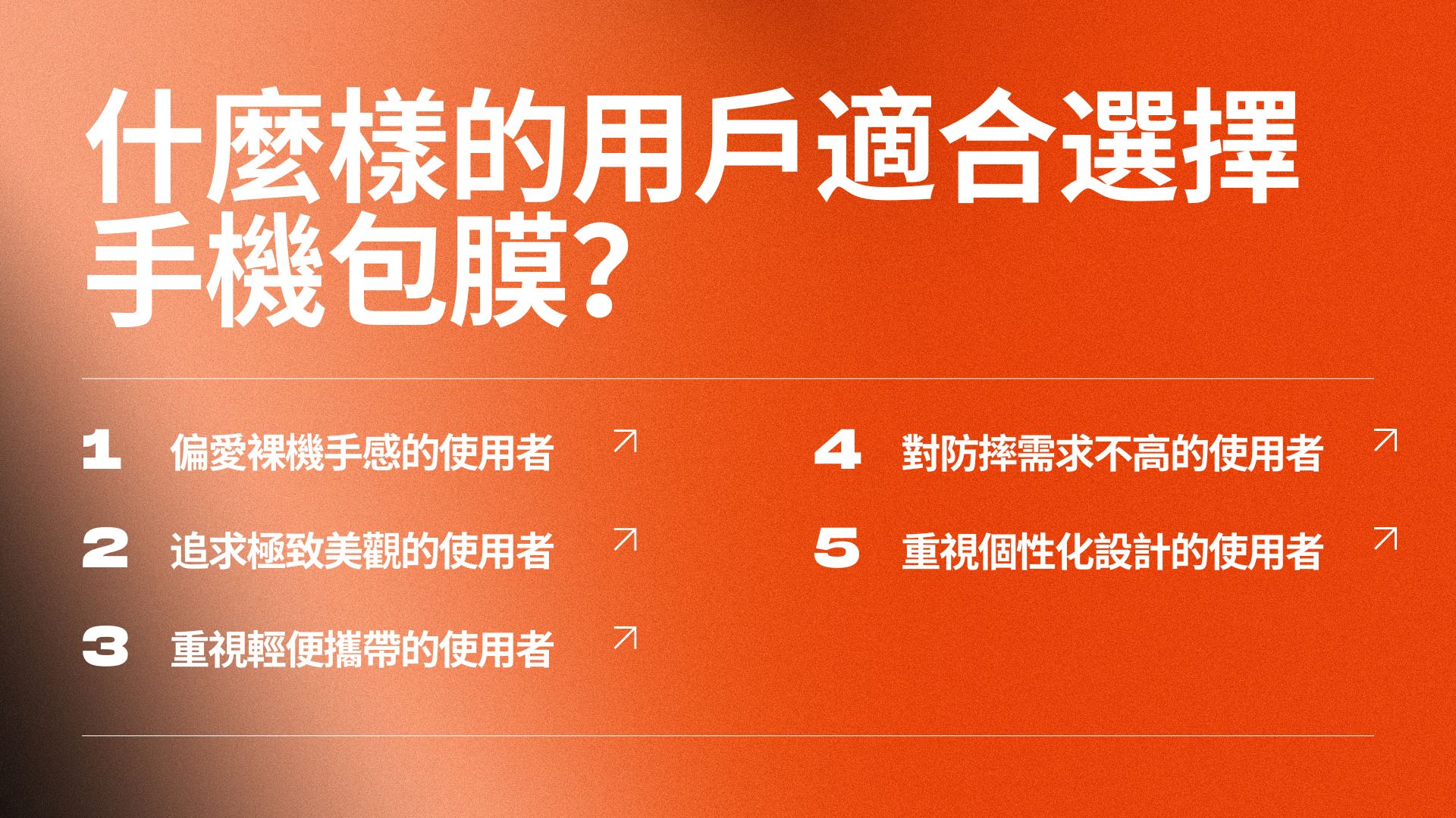 • 手機包膜:適合追求輕薄外觀且日常磕碰風險較低的使用者。