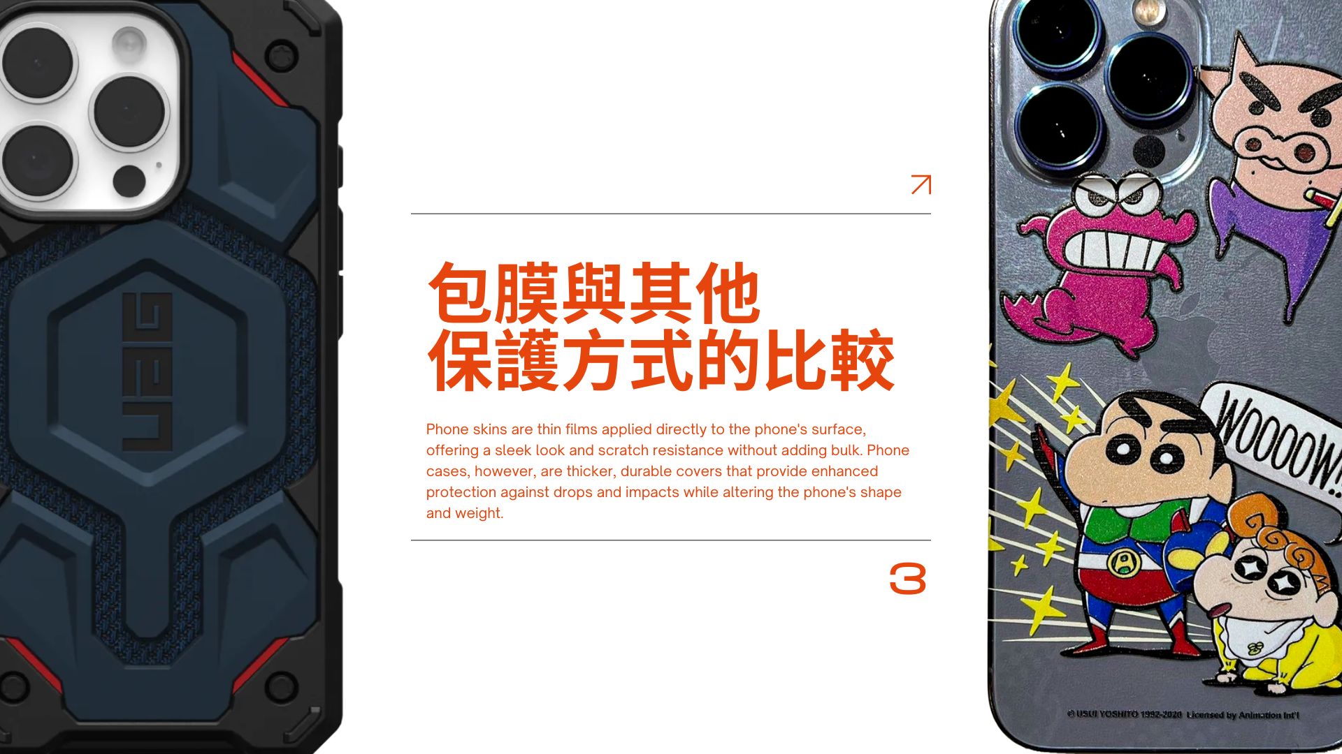 • 包膜則適合追求裸機手感與外型美觀的用戶,尤其在保持輕薄和多樣化設計上有其優勢。
