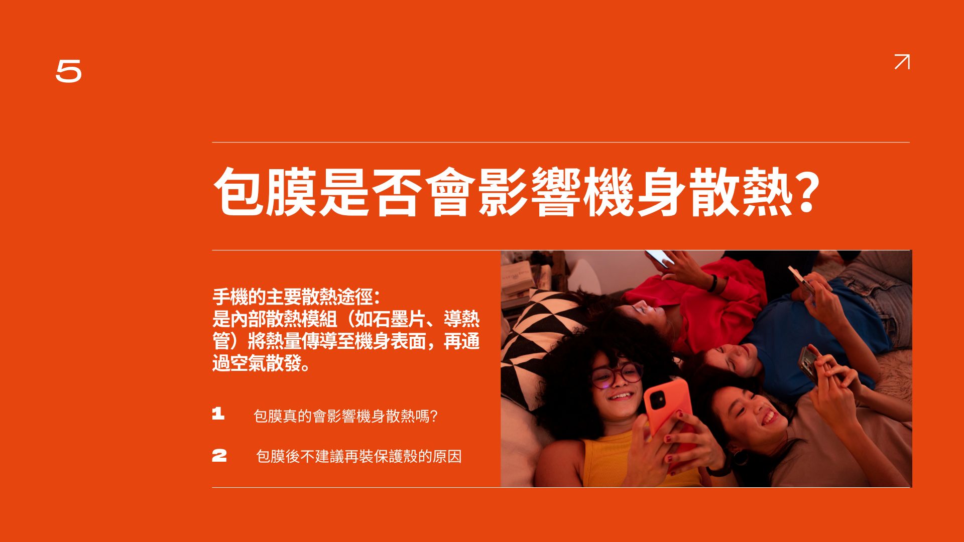 • 例外情況:在高負載運行(如長時間遊戲或拍攝影片)時,包膜可能稍微延緩機身表面的散熱速度,但不會影響手機核心的安全溫度範圍。