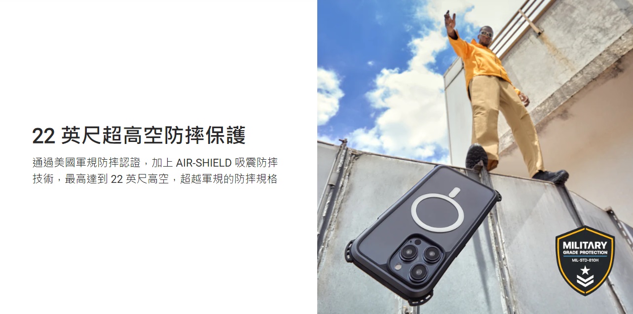- 通過美國軍規防落摔測試,最高可達 22 英尺高空防摔保護