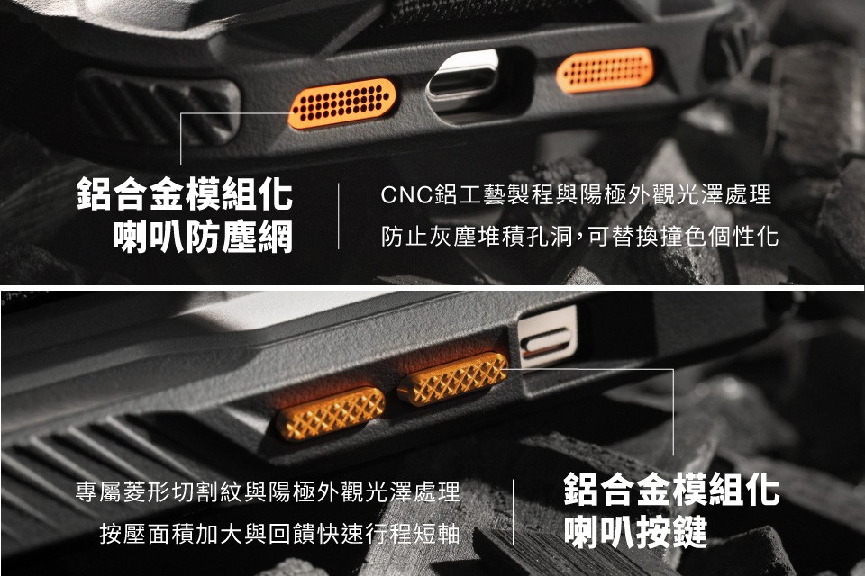 ◆ 領導工藝鋁合金按鍵:按壓鍵程短、回彈,回饋感絕佳